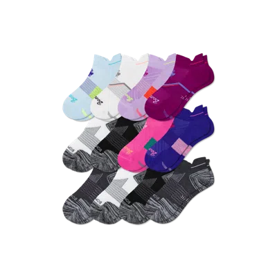 Lightweight, purpose-built socks for running, working out and movement. Bombas Hex Tec construction for breathability and moisture-wicking. Proprietary poly/cotton blend yarns. With comfort innovations like strategic zone cushioning and airflow ventilation. Specially designed to help you move with grace and speed. One purchased = one donated. Women's Running Ankle Sock 12-Pack - Lavender Rose Core Mix - Large - Cotton Blend - Bombas