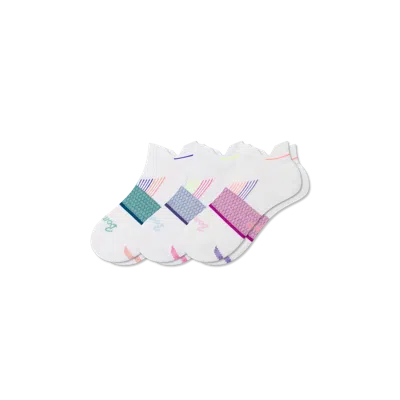 Lightweight, purpose-built socks for running, working out and movement. Bombas Hex Tec construction for breathability and moisture-wicking. Proprietary poly/cotton blend yarns. With comfort innovations like strategic zone cushioning and airflow ventilation. Specially designed to help you move with grace and speed. One purchased = one donated. Women's Running Ankle Sock 3-Pack - Bliss Pink Mix - Large - Cotton Blend - Bombas