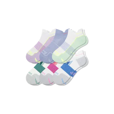 Lightweight, purpose-built socks for running, working out and movement. Bombas Hex Tec construction for breathability and moisture-wicking. Proprietary poly/cotton blend yarns. With comfort innovations like strategic zone cushioning and airflow ventilation. Specially designed to help you move with grace and speed. One purchased = one donated. Women's Running Ankle Sock 6-Pack - Lavender Pink Mix - Large - Cotton Blend - Bombas