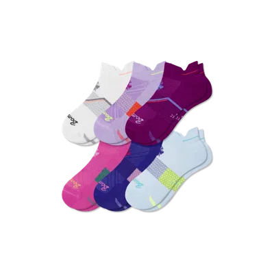 Lightweight, purpose-built socks for running, working out and movement. Bombas Hex Tec construction for breathability and moisture-wicking. Proprietary poly/cotton blend yarns. With comfort innovations like strategic zone cushioning and airflow ventilation. Specially designed to help you move with grace and speed. One purchased = one donated. Women's Running Ankle Sock 6-Pack - Lavender Rose Mix - Small - Cotton Blend - Bombas