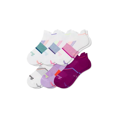 Lightweight, purpose-built socks for running, working out and movement. Bombas Hex Tec construction for breathability and moisture-wicking. Proprietary poly/cotton blend yarns. With comfort innovations like strategic zone cushioning and airflow ventilation. Specially designed to help you move with grace and speed. One purchased = one donated. Women's Running Ankle Sock 6-Pack - Cloud Magenta Mix - Medium - Cotton Blend - Bombas