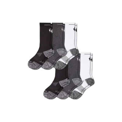 Why did we make our running socks in a calf height? Because they're the perfect rise that never slips or moves around, while even keeping dirt out of your socks while trail running. Bombas Hex Tec construction for breathability and moisture-wicking. Proprietary poly/cotton blend yarns. Made with comfort innovations like strategic zone cushioning and airflow ventilation. One purchased = one donated. Men's Running Calf Sock 6-Pack - Bee Mix - Extra Large - Bombas