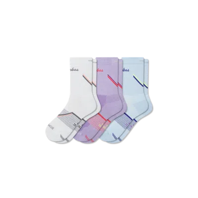 Our runners’ favorite just got a new height: Half Calf. Shorter than our standard calf, but still tall enough to give you a little extra support (and sweat wicking) through the legs—with left-right contouring for an expert-level fit on your feet. Women's Running Half Calf Sock 3-Pack - Lavender Blue Mix - Large - Cotton Blend - Bombas