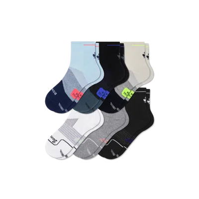 These lightweight socks are made for runners who want comfort that out-performs, from first stride to finish line. These pro-level runners are engineered for breathability and a secure, second-skin fit. Strategic cushioning helps absorb impact where it matters most, while targeted airflow keeps feet cool mile after mile. Men's Running Quarter Sock 6-Pack - Cloud Mist Mix - Medium - Cotton Blend - Bombas