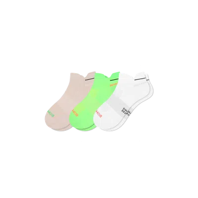 We worked with seasoned, competitive runners to better understand what they crave from their running socks. The end result: our most technically advanced running socks, built for pro-level performance. Targeted compression delivers locked-in support, while breathable, sweat-wicking RunPro yarns keep you cool and dry. An ultra-light build makes for a second skin feel, with a Seamless Toe, Left-Right Engineering, and a Double Blister Tab. Women's RunPro Ankle Sock 3-Pack - Lime Sand Mix - Medium - Nylon/elastane - Bombas