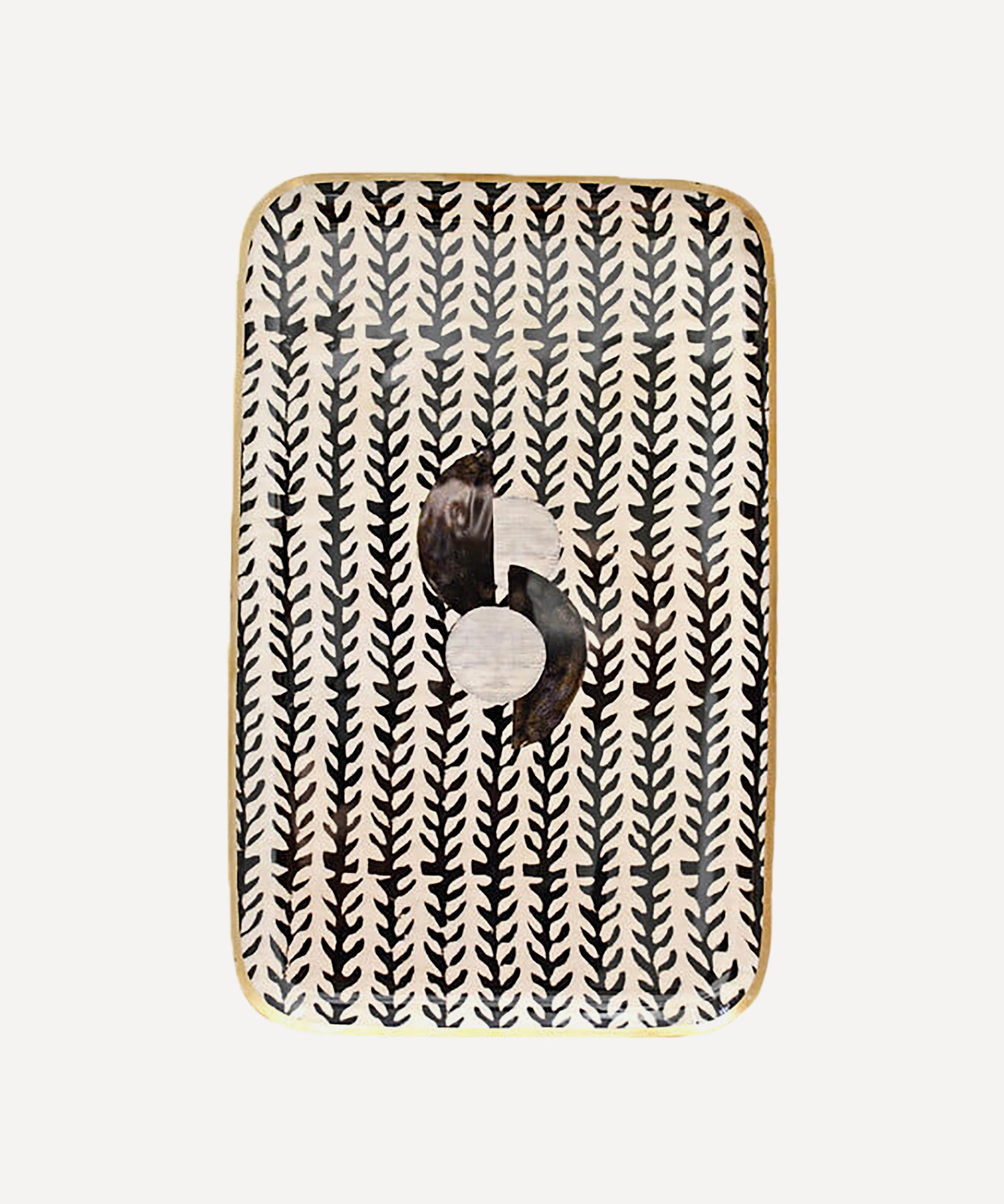 Presenting the brand's charming, off-beat spirit, the thorns tray from Boncoeurs will add an artful accent to interiors, whether traditional or contemporary. Meticulously crafted from durable enamelled aluminium, this tray features an indian block printed botanical design for a joyful, mesmerising geometric with a central minimalist motif. Delicately finished with a hand-gilded edge, pile trinkets on this handy tray or arrange on your desk for the perfect eclectic accent to your workspace.