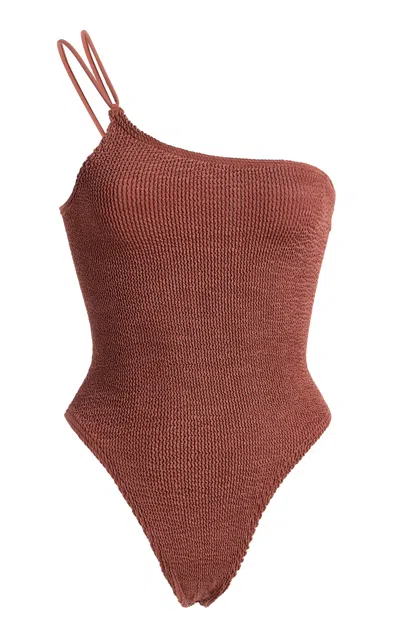 Bond-Eye is the embodiment of the iconic Australian summer spirit. Designed and handmade in Bondi; the label crafts considered and flattering swimwear from the signature one-size tubular crinkled fabric made famous in the 80s.Made in Australia from The Authentic Crinkle™; the 'Lotus' one-piece has an asymmetric design with a double shoulder strap and high-cut bottoms.