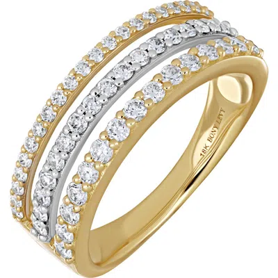 A total of 53 round diamonds add exquisite sparkle to the three merged bands this handcrafted 18-karat gold band ring. Total diamond weight: 0.71ct.<br> Color: G<br> Clarity: VS<br> 18k gold/diamond<br> Imported<br> >Diamond Guide