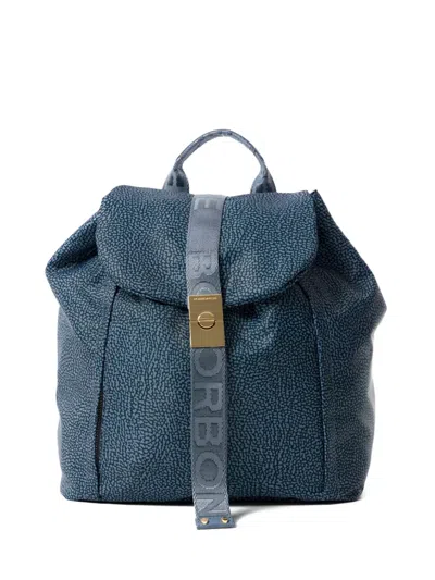 blue textured finish top handle adjustable shoulder straps gold-tone hardware buckle fastening