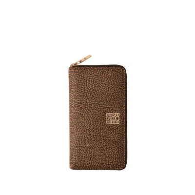 BORBONESE Pebbled Leather Zip-around Wallet In Brown