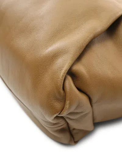 circa 2010s sand brown calf leather single flat top handle gathered detailing main compartment Condition: EXCELLENT. This previously owned item is in near-perfect condition with no signs of damage or use.
