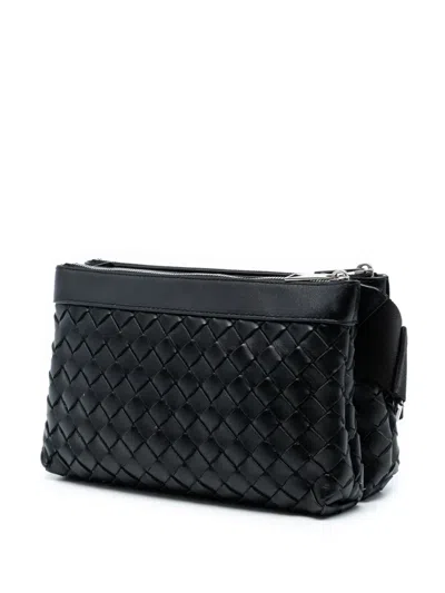 Pre-owned 2012-2025 Leather Intrecciato Duo Crossbody Bag In Black