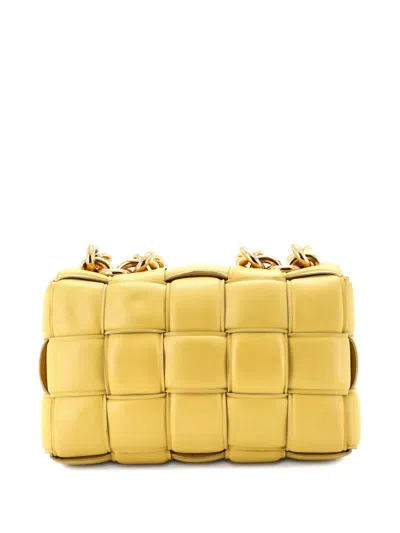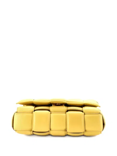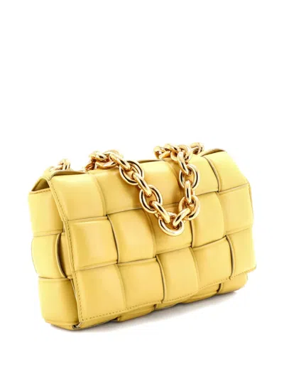 Pre-owned Cassette Chain Padded Maxi Intrecciato Leather Crossbody Bag In Yellow