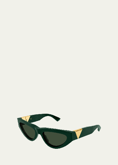 BOTTEGA VENETA Inverted Triangle Acetate Cat-eye Sunglasses In Shiny Solid Dark