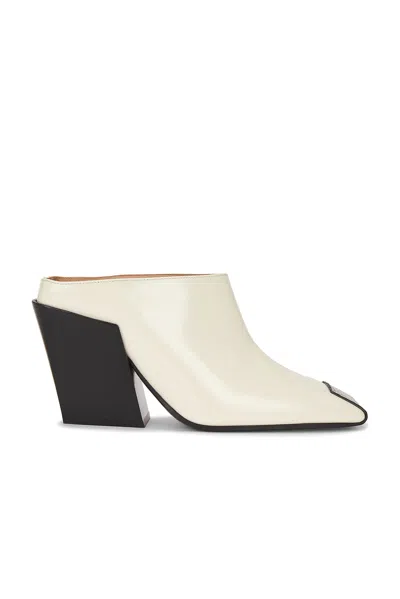Mule by Bottega Veneta in Sea Salt leather, characterized by a square toe with python effect leather, sculptural heel, and leather sole.