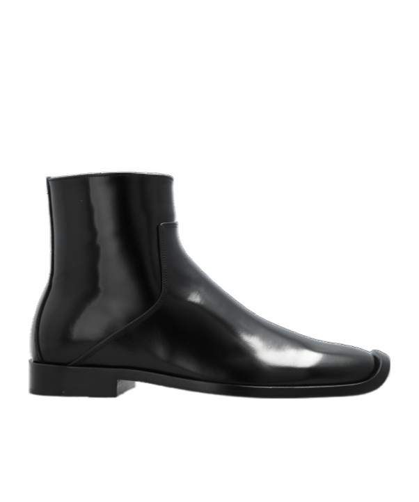 Material: 100% calfskin. Square toe. Side zip closure. Stitched details. Branded insole. Leather sole. Made in Italy