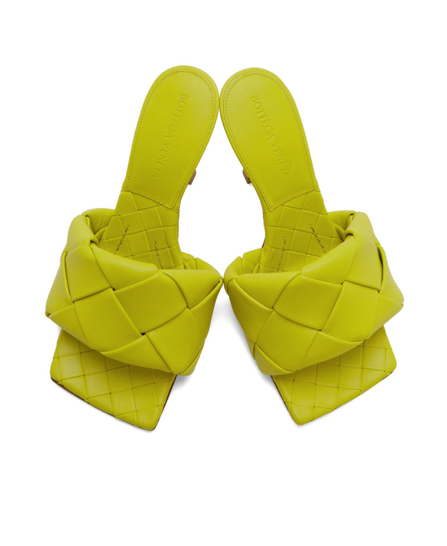 BOTTEGA VENETA Yellow Maxi Intreccio Lido Heeled Sandals In 7278 Kiwi