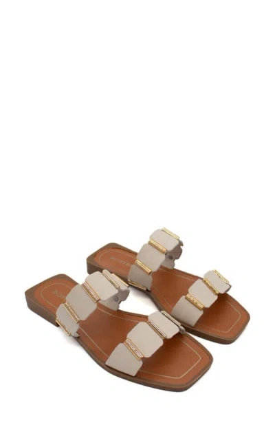 Hardware glints at the soft leather straps of this warm-weather ready slide sandal fronted with a square toe to complete the trend-savvy look. Leather upper/synthetic lining and sole Made in Brazil
