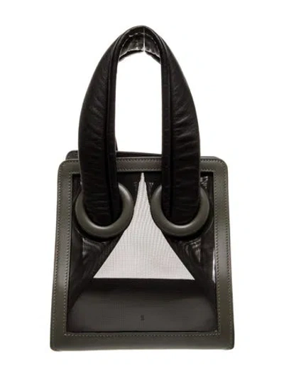 Boyy Top Handle Bag Black & Grey Mesh Colorblock Pattern Flat Handles & Single Shoulder Strap Leather Trim Embellishment Unlined Open Top Protective Feet at Base | Boyy Mesh Top Handle Bag in Black/Grey