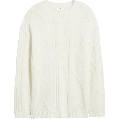 BP. Cabled Oversize Cotton Blend Crewneck Sweater In White