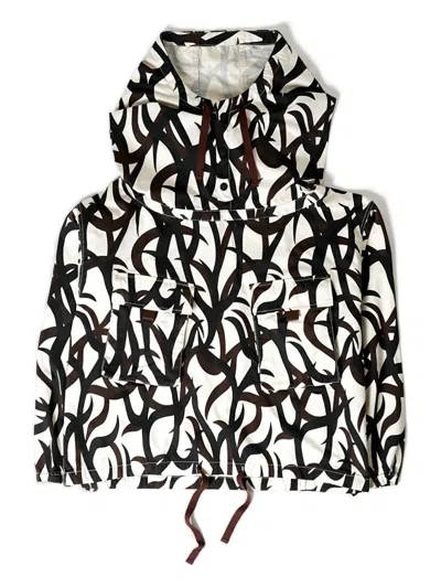 cream white snap button fastening drawstring hem side pockets