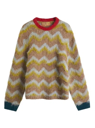 BRAIN DEAD Zig-zag Wool-blend Knit Sweater In Multi
