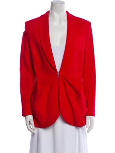 Brandon Maxwell Blazer Red Pleated Accents & Shawl Collar Slit Pockets & Hook and Eye Closure Fit: Jackets by Brandon Maxwell typically fit true to size. | Brandon Maxwell Blazer in Red, Women's US 10 | L