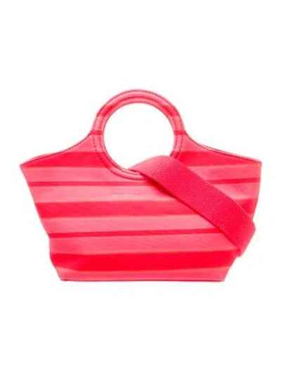 Brandon Maxwell Top Handle Bag Red Canvas Striped Silver-Tone Hardware Canvas Lining Open Top | Brandon Maxwell Canvas Top Handle Bag in Red