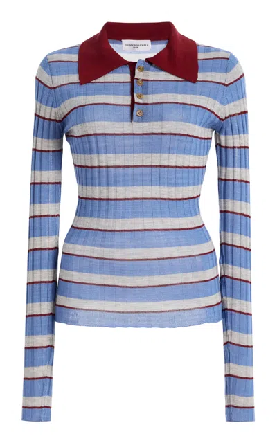 Brandon Maxwell The Joni Striped Silk-Cashmere Polo Top - Moda Operandi