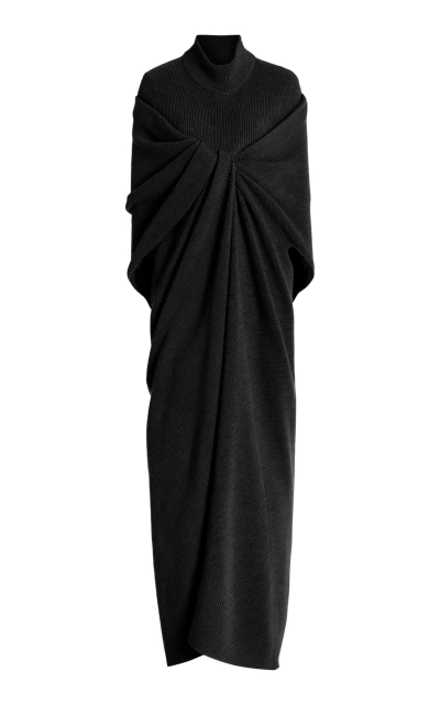 Brandon Maxwell - The Holden Wool Turtleneck Draped Midi Dress - Black - XL - Only At Moda Operandi