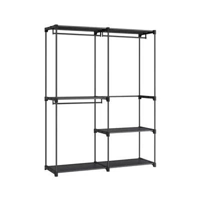 Specifications - - Color - Black - Material - Steel, Plastic - Product Size - 16.9"D x 54.3"W x 71.7"H (43 x 138 x 182 cm) - Product Weight - 11 lb (5 kg) - Max. Static Load Capacity of Each Hanging Rod - 44 lb (20 kg) - Max. Static Load Capacity of Each Shelf - 22 lb (10 kg) Package Contents - - 1 x Portable Closet - 1 x Anti-Tip Kit - 1 x InstructionsSONGMICS Notes - - Avoid outdoor use as this will reduce the service life of the product.- During assembly, make sure that the steel tubes and plastic connectors are securely connected.- Remove all items from the product before moving it.