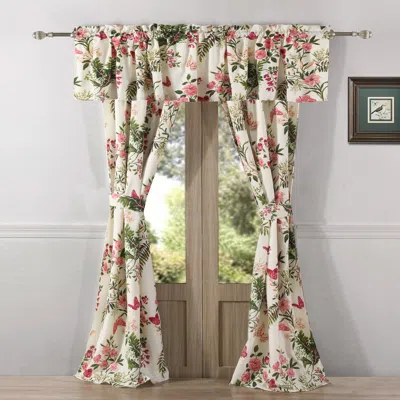 Enhance your space with outdoor charm! Butterflies Curtain panel set fills your space with vivid florals and butterflies. This traditional curtain panel set is lined with solid color fabric for increased privacy and sun protection. This 4-Piece set includes two panels and two tie backs. Dimensions - 84" long x 42" wide (x2). 100% polyester face, back (2 ply). Three-inch rod pocket fits most curtain rods for hanging. Machine wash. Imported.