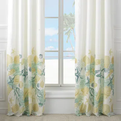 Create relaxed beach resort style with the Grand Bahama window curtain panel set. Seafoam green and gold seashells are washed ashore against an alabaster white ground. Each curtain panel set is lined with solid color fabric for increased privacy and sun protection. This 4-Piece set includes two panels and two tie backs. Dimensions - Each panel measures 84 inches long x 42 inches wide (x2). Overall dimensions of set, 84 inches x 84 inches. 100% polyester face, back (2 ply). Three-inch rod pocket fits most curtain rods for hanging. Machine wash.