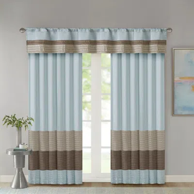Description - This transitional pintucked window panel features a modern colorblock design in subtle blue, taupe, and brown tones, enhanced with polyoni fabric for a light sheen. The pintuck detailing adds texture and dimension, while the added lining provides increased privacy and improved drapability. Designed for versatile styling, it can be hung using either the rod pocket or back tabs. Fits up to a 1.25' diameter rod.Features - Transitional Pintuck Design - Modern colorblock detailing with textured pintucking. Versatile Hanging Options - Back tab or rod pocket for tailored or casual styling. Fully Lined - Provides more privacy and fuller drape. Light Sheen Fabric - Adds a subtle touch of elegance. Standard Coverage Recommendation - Single panel measures 50' wide; two panels recommended per window. Easy Care - Machine washable for convenience. Specifications - Main Color - Blue Multi Main Material - 100% Polyester Polyoni; Lining - 100% Polyester Dimensions - 50' W x 84' L Assembled Length - 84.00 in. Assembled Width - 50.00 in. Assembled Height - 0.13 in. Weight - 1.59 lbs