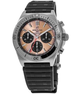 Breitling Chronomat B01 42 Automatic Chronograph Bronze Dial Black Rubber Strap Men's Watch AB0134101K1S1 100% Brand New & Authentic Product Shipped Within 3 Days Top Seller Reviews speak for themselves Click to view Shop risk free with WatchMaxx Money Back Guarantee 5 Year Warranty Usually ships within 3 business days of receiving payment. We accept PayPal. For other payment options please contact us. DetailsWarrantyReturn PolicyShipping & TaxAbout UsQuestions? Product Details Case Case Material Stainless Steel Case Description Brushed Stainless Steel Case Finish Brushed Case Shape Round Case Diameter 42mm Case Thickness 15.1mm Case Back Transparent Bezel Uni-Directional Rotating. Ratcheted Crystal Scratch Resistant Sapphire Crown Screw Down Dial Dial Color Bronze Dial Description Luminous Silver Tone Hands and Stick Hour Markers with Minute Markers and a Tachymeter Around the Outer Rim, 3 Sub-dials and the Date at 6 o'clock on a Bronze Dial Dial Markers Stick Hand Color Silver Sub-Dials 60 Second, 30 M