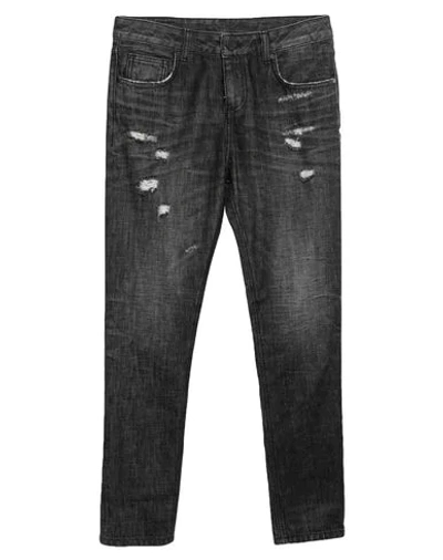 denim, torn fabric, faded, leather applications, logo, solid color, colored wash, mid rise, front closure, button, zip, multipockets, contains non-textile parts of animal origin , Color: Black , Size: 28