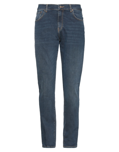 denim, faded, metal applications, brand logo, solid color, dark wash, mid rise, tapered leg, regular fit, button closing, multipockets, skinny model , Color: Blue , Size: 32