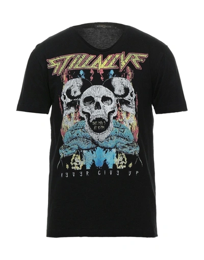 jersey, no appliqués, solid color with print, round collar, short sleeves, no pockets , Color: Black , Size: S