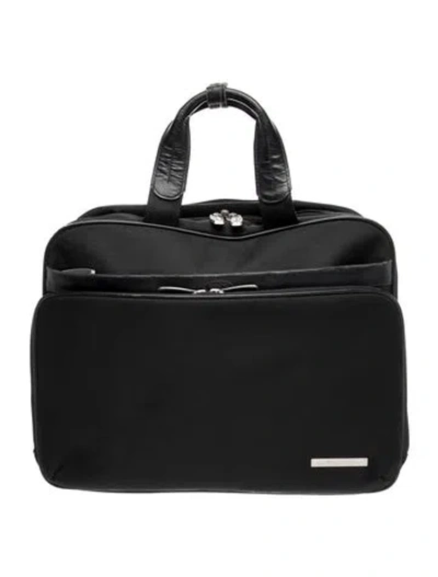 Bric's Briefcase Black Nylon Tonal Hardware Nylon Lining Zip Closure at Top Protective Feet at Base | Bric's Nylon Briefcase in Black