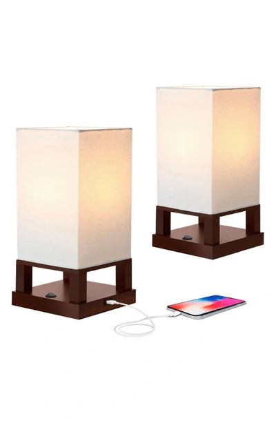 A contemporary lamp with a clean, modern design does dual duty thanks to a handy USB port that lets you plug in your phone.Feaures: On/off switch.Sizing information: 3.16 lb.; 6" x 6" x 14".