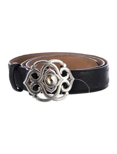 Brighton Belt Black Leather Silver-Tone Hardware Clasp Closure Unfortunately, due to restrictions, this item may not be eligible for shipping in all areas. | Brighton Leather Belt in Black, Women's L