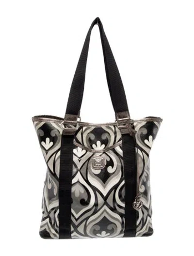 Brighton Top Handle Bag Blue Leather Printed Silver-Tone Hardware Dual Shoulder Straps Leather Trim Embellishment Logo Jacquard Lining Snap Closure at Top Protective Feet at Base Unfortunately, due to restrictions, this item may not be eligible for shipping in all areas. | Brighton Leather Top Handle Bag in Blue
