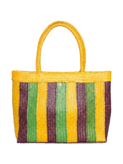 BRIGITTE Bahia Stripe Woven Beach Bag In Yellow