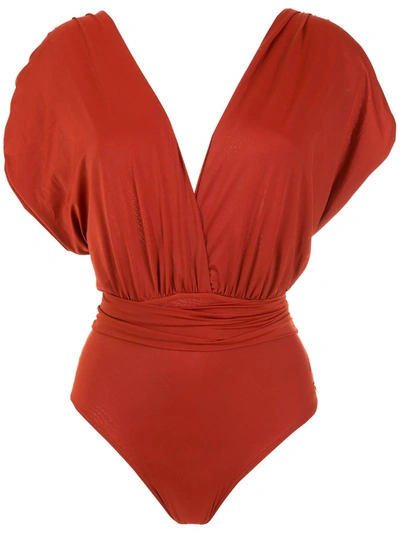 BRIGITTE Ruched V-neck Swimsuit In Braun