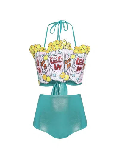 aqua green sequin embellishment self-tie fastening Be mindful to try on swimwear over your own garments.