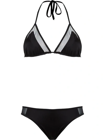 Black triangle bikini set from Brigitte. Swimwear must be tried on over your own garments. This item fits small. Please note this item has a Brazilian cut.