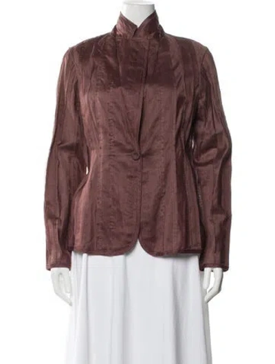 Brioni Jacket Brown Pleated & Raw-Edge Accents Stand Collar Button Closure Fit: Jackets by Brioni typically fit true to size. | Brioni Jacket in Brown, Women's M