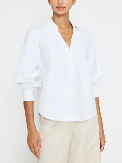 Runs true to size Relaxed fit Popover silhouette Collared Deep V neckline with grosgrain detailing at the under placket Saddle shoulders Long shirred sleeves with button cuffs Curved hem 65% Polyester/35% Cotton Imported Model is 5'9" and is wearing a size Small