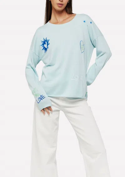 Darlene Crew Pullover In Aqua Mist / Multi In Blue