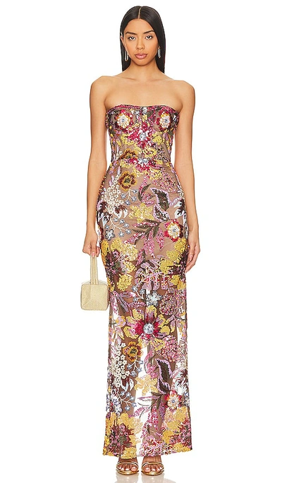 BRONX AND BANCO Dahlia Strapless Floral Sequin Column Gown In Sequin Multi